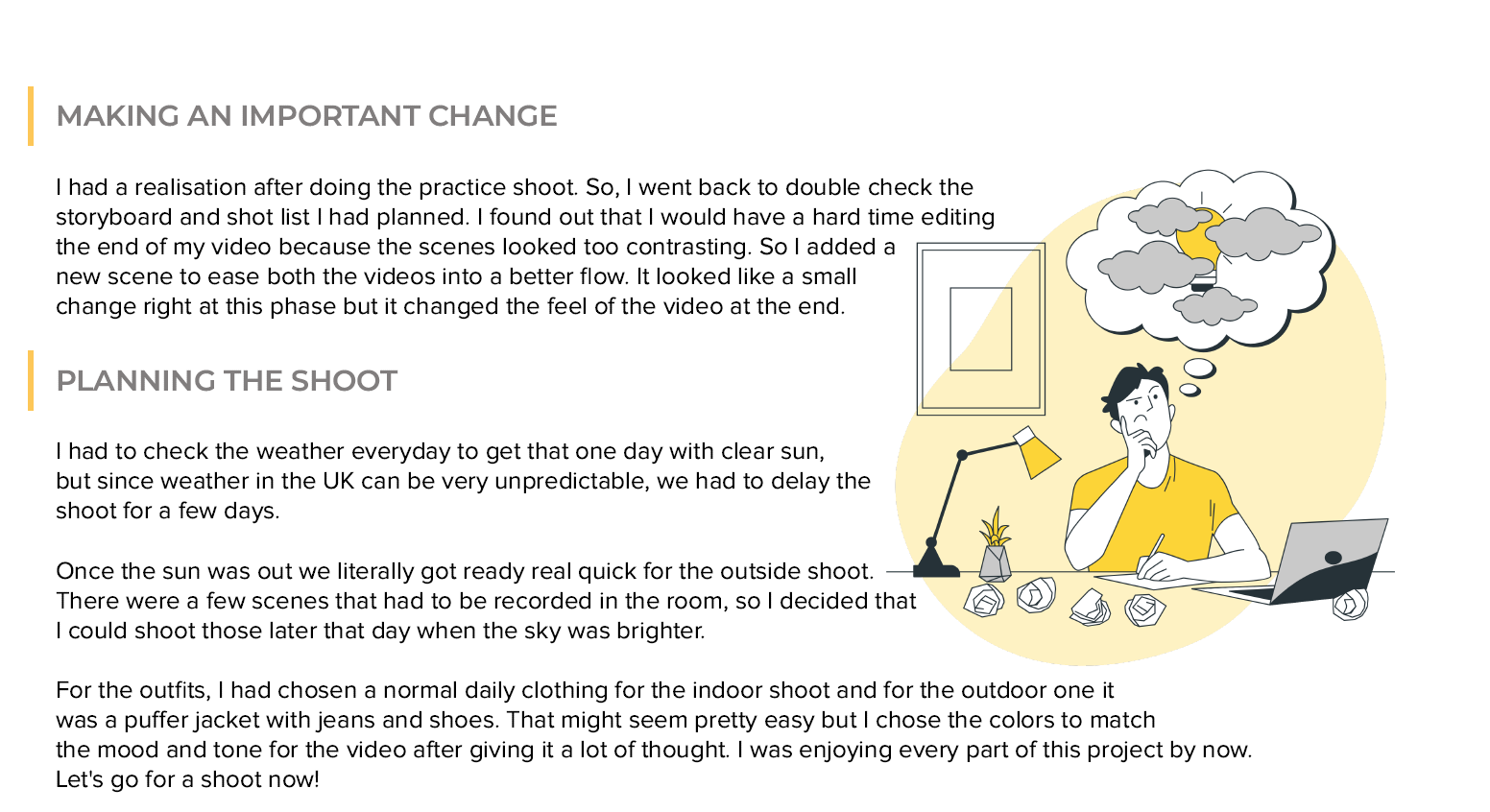 This project was created as part of a university module focused on understanding the full video and web production workflow β from pre-production and filming to editing and online delivery. The brief was to develop a 40-second promotional advert based on a design concept, product, company, or original story idea.